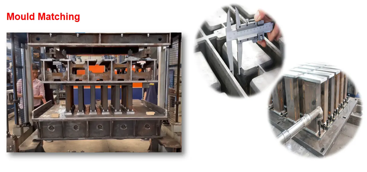 Heavy Brick Mold е форма, използвана за производство на големи, високоякостни тухли или блокове. Обикновено се изработва от материали с висока якост и може да издържи на по-голям натиск и удар, за да се гарантира стабилността на формата и качеството на формоването на тухли по време на процеса на производство на тухли. Използва се главно в строителната индустрия и пътните съоръжения и т.н., за производство на тежки тухли с различни спецификации, като големи кухи тухли, плътни тухли, тухли с бордюр, хидравлични тухли и т.н., за да отговарят на изискванията за размер, здравина и форма на тухли за различни проекти.